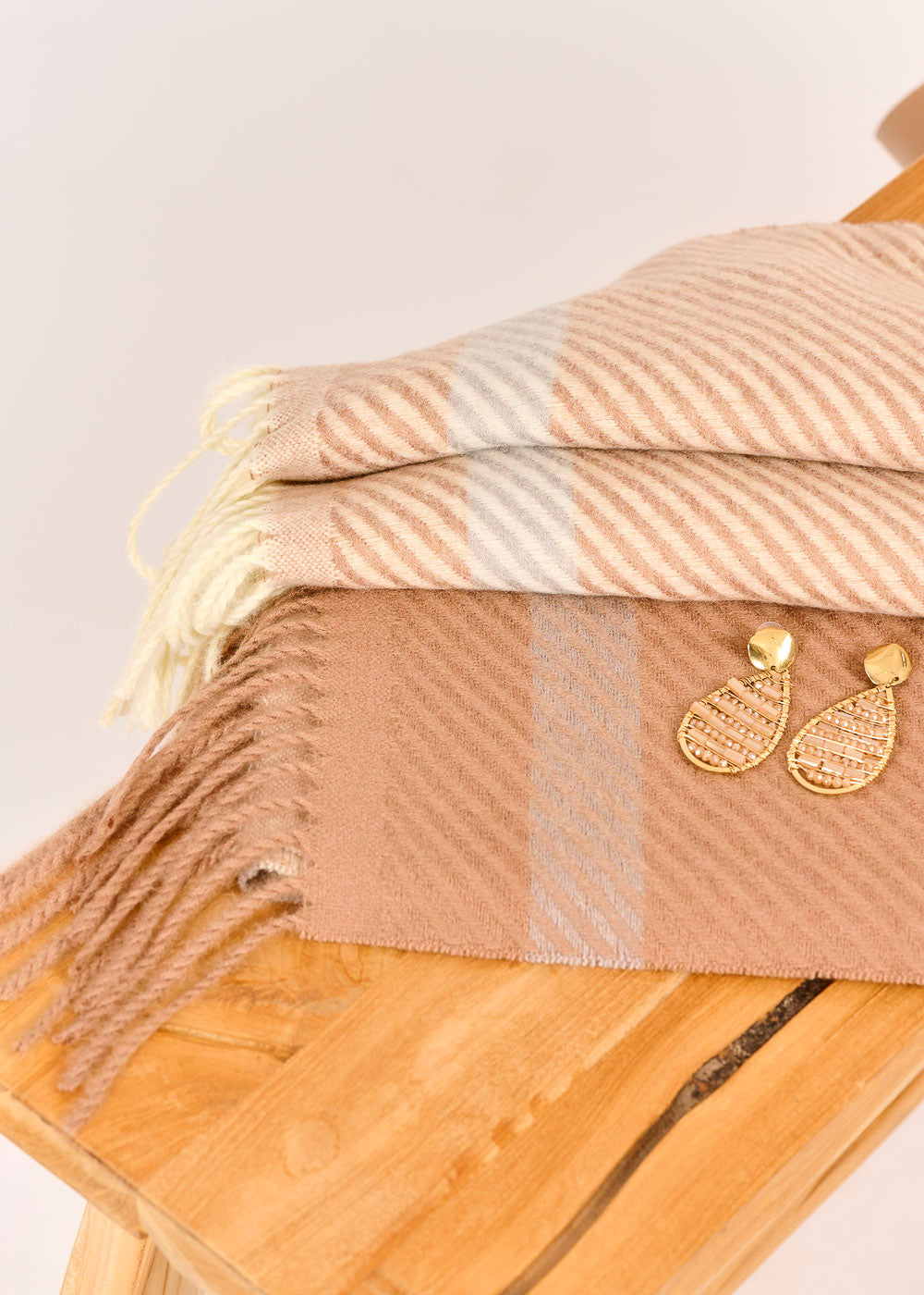 Leicht, anschmiegsam und wärmend – genau die Art von Accessoire, das man morgens umlegt und den ganzen Tag bei sich trägt, weil es sich einfach richtig anfühlt. Die Cognacnuancen veredeln dein Outfit stilvoll, ohne Aufmerksamkeit zu verlangen. Der Viskose-Anteil verleiht dem Tuch eine fließende, weiche Struktur.