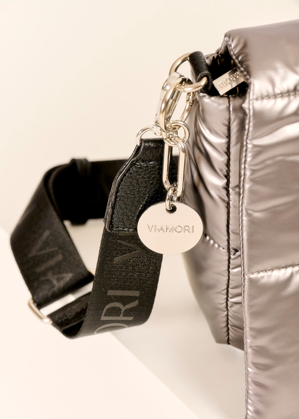 Glänzender Auftritt: Diese silberne Crossbody Bag mit Stepp-Design zieht alle Blicke auf sich. Das leichte, kompakte Format macht sie zum perfekten Begleiter für Tag und Nacht.