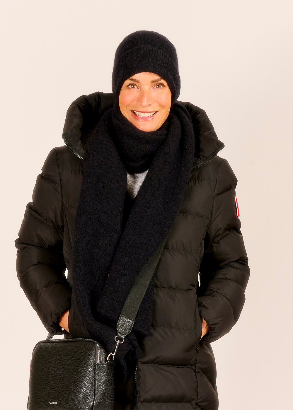 Tauche ein in luxuriösen Komfort mit unserem Schal Sciarpa Babyalpaca in edlem Nero – weich wie ein Hauch von Wolken und gleichzeitig warm genug für die kältesten Tage. Die perfekte Harmonie aus Stil und Funktion wird durch die passende Mütze abgerundet, die jedem Outfit eine elegante Note verleiht. Ein Duo aus Schal und Mütze, das klassische Eleganz mit unwiderstehlicher Gemütlichkeit vereint.