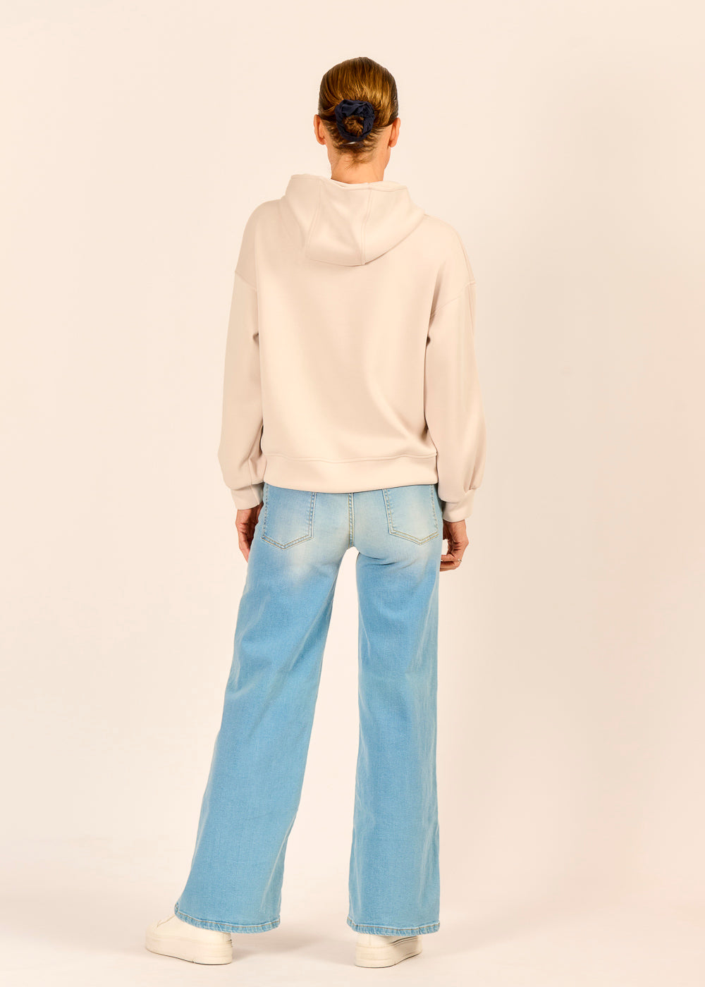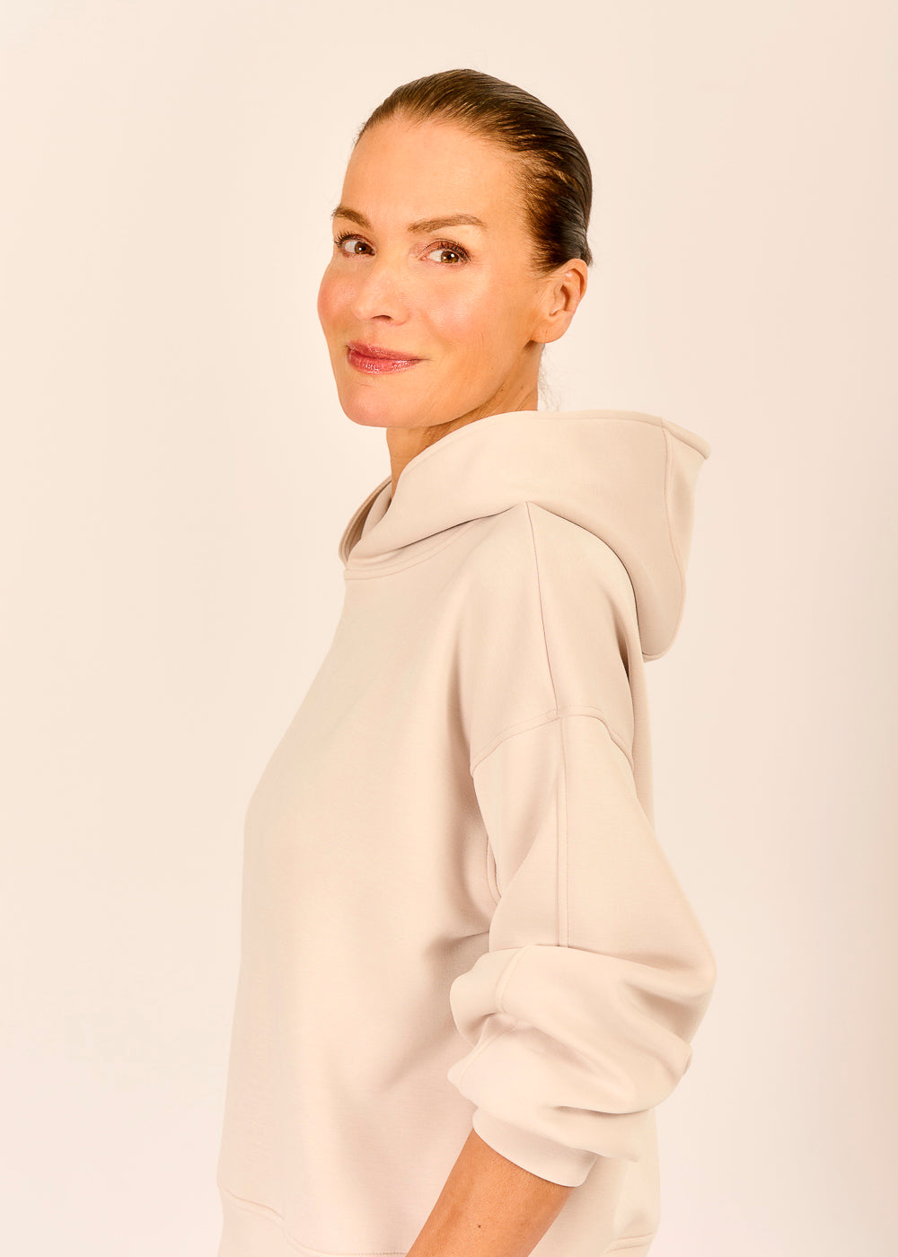 Dieser edle Hoody strahlt Ruhe und moderne Lässigkeit aus und erinnert an die Strände der italienischen Riviera. Viskose und Modal sorgen für ein besonders weiches, fließendes Tragegefühl. Er lässt sich mühelos zu hellen wie dunklen Denim Looks kombinieren – ein Essential für entspannte Frühlingstage.